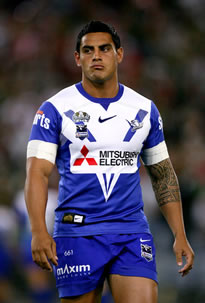 > Maxim's Bulldogs Shorts Sponsorship in action with Bulldogs star Reni Maitua |